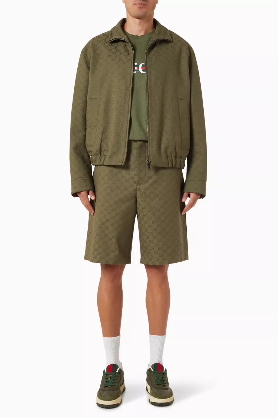 Elevate your casual wardrobe with the Gucci Zip Jacket in GG Canvas, a modern take on timeless Italian luxury. Crafted from the brand’s iconic GG canvas, this jacket features a sleek zip-front closure and a refined silhouette for effortless layering. Signature details, including the GG motif and subtle leather trims, underscore Gucci’s commitment to quality and style. Comfortable yet statement-making, this jacket transitions seamlessly from streetwear to elevated casual looks.
